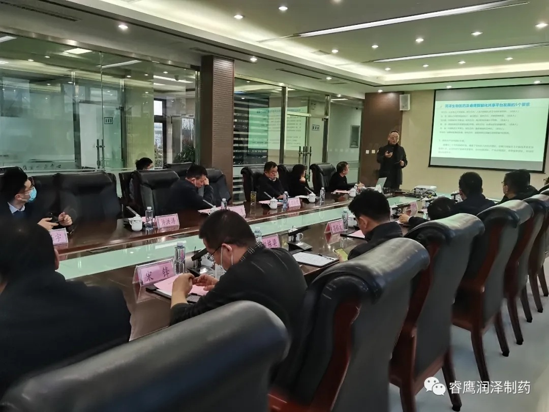 在會議室,彭總就企業概況、產業布局、發展規劃、全產業鏈智能制造共享平臺打造、中藥大健康“一人一方”及抗病毒產品“蘭冠”項目進展情況進行了詳細的介紹。