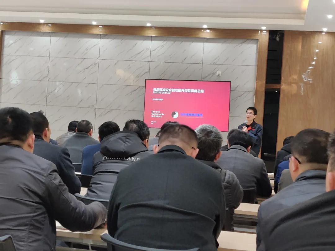 杜邦公司鄄城睿鷹項目經理董祥杰對鄄城睿鷹安全管理提升項目進行了階段性總結。董經理分別從項目整體概述、亮點與成果、改進空間及建議三方面分別進行分析和匯報。他指出,鄄城睿鷹安全管理水平較之杜邦公司接收前有顯著提升,無論從安全管理流程建立、技術模式切入、人員能力建設、還是安全文化建設,都上了一個新的臺階。根據杜邦公司安全曲線,目前,該項目安全管理水平處于嚴格監督管理前期,我們還有很多工作需要做牢靠、做扎實,要關注細節、提高安全意識,從根源上消除安全隱患。通過杜邦公司的安全輔導,我們會逐步讓鄄城睿鷹項目的安全水平由嚴格管理前期階段向嚴格管理后期、自主管理階段逐步過渡。