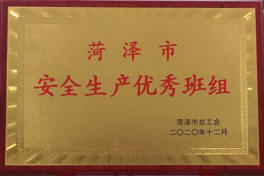 我集團四廠404車間生產合成崗榮獲“菏澤市安全生產優秀班組”榮譽稱號。