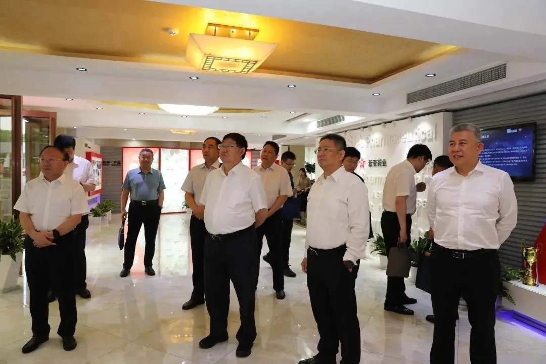 2021年6月9日上午,山東省菏澤市人大常委會主任、黨組書記尹玉明,菏澤市副市長曹升靈及相關(guān)委辦局領(lǐng)導(dǎo),山東睿鷹制藥集團(tuán)副總裁任學(xué)軍等一行赴上藥新亞考察。上藥新亞公司總經(jīng)理唐堅豪,副總經(jīng)理奚春明等陪同考察。