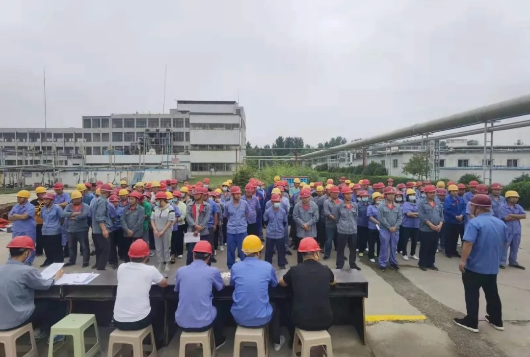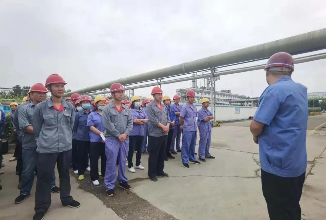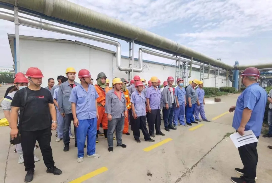 在緊張而又短暫的學習后,總指揮趙紅瑞廠長向廣大員工們講述消防演練的程序:①火災事故發生②火災事故逐級上報③人員緊急疏散與救護④初期火災撲救、現場處置及消防稀釋⑤環保檢測與恢復⑥演練現場總結。隨后,現場指揮王成華主任向各工作組說明了具體的演練方案步驟。