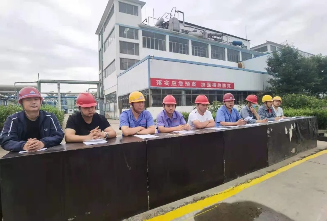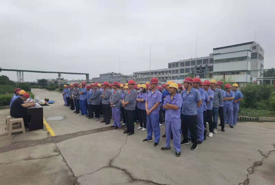 6月18日早晨,天氣涼爽,合成中心全體員工精神抖擻、嚴陣以待,準備舉行綜合應急預案演練。在開完班前會后,各車間主任帶領各自員工向應急預案演練場地——合成中心原料東罐區演練集合場地走去。公司安全科全體人員,已經提前一天準備好演練場地規劃及演練用消防器材準備工作,為本次綜合應急預案演練順利進行奠定了基礎。
