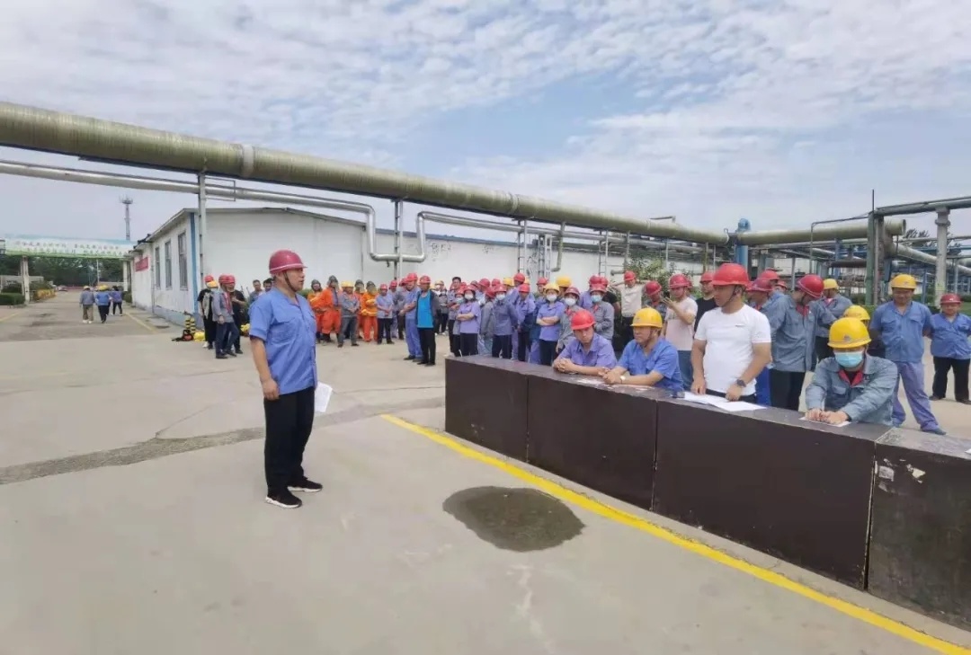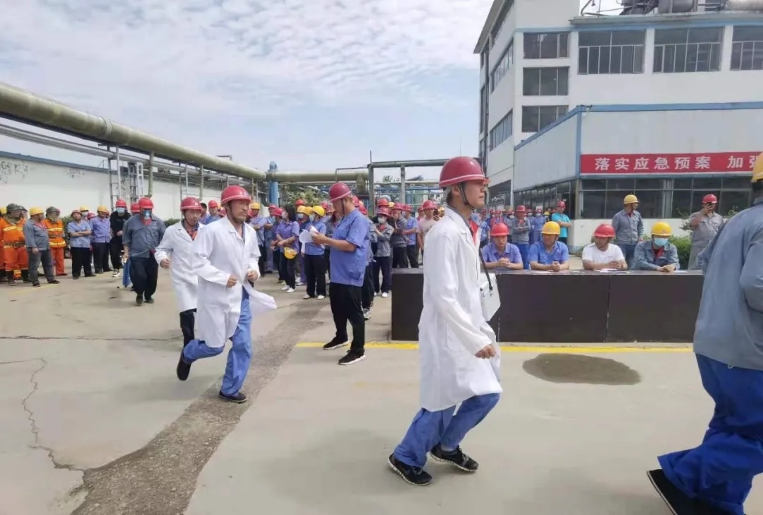 當各工作組人員和其他工作人員就位后,總指揮趙紅瑞廠長向現場報警組下達命令:“啟動公司綜合應急預案。”