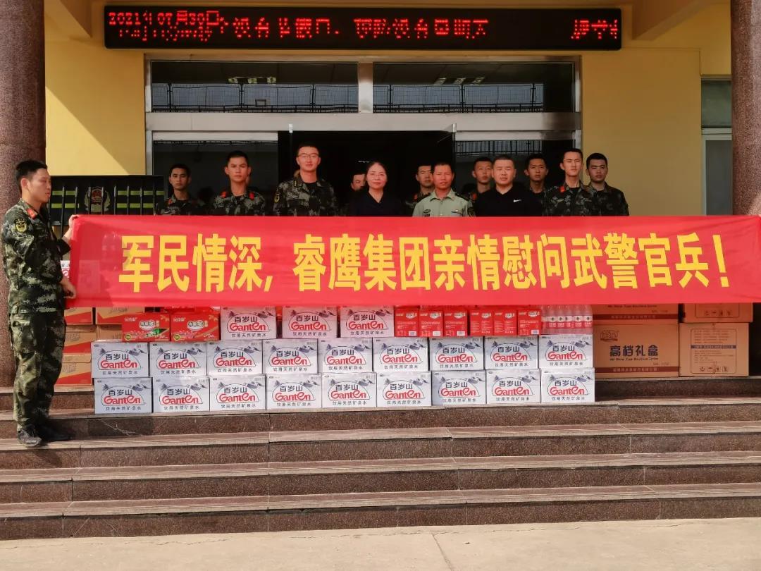 7月30日,在“八一“建軍節(jié)即將來臨之際,睿鷹集團(tuán)走進(jìn)菏澤武警中隊(duì),向廣大武警戰(zhàn)士致以節(jié)日的問候和崇高的敬意。并將價(jià)值一萬元的慰問物資送到了武警戰(zhàn)士手中。