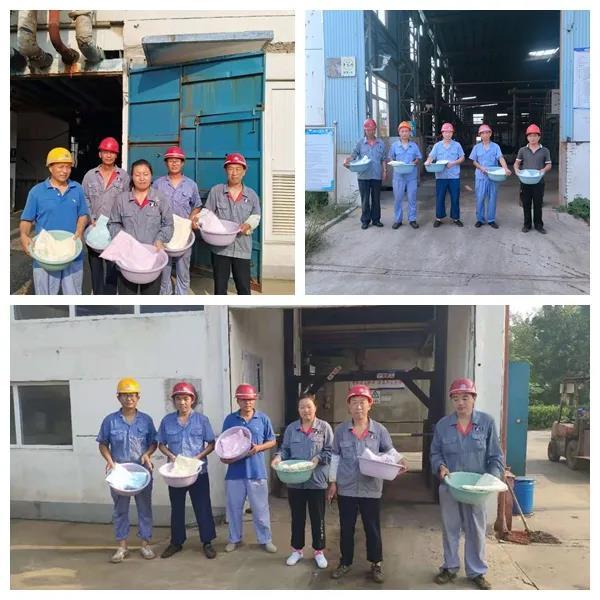 隨后,工會分別將慰問物資分發給了工作環境相對來說較為艱苦的睿鷹四廠及合成中心的當班人員。