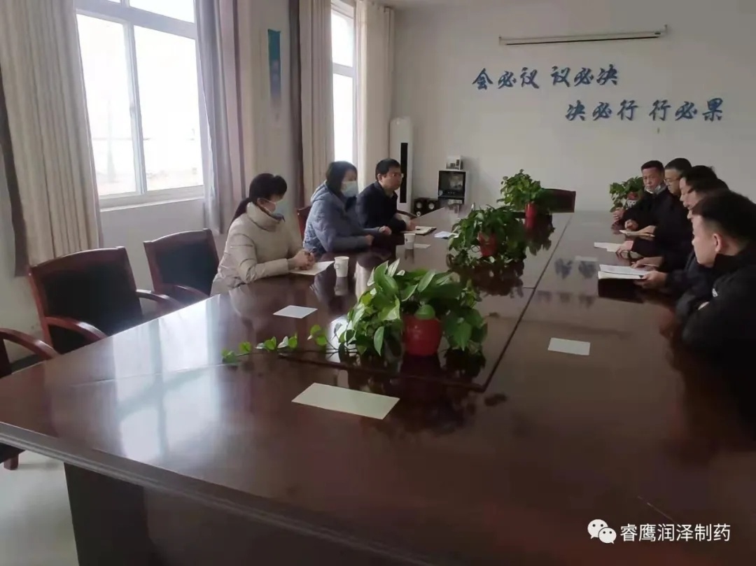 在公司一樓會議室,和源公司安全總監王海兵向袁主席一行匯報了項目的進展情況。他說,目前睿鷹制藥集團已經成立了以和源公司總經理蔣喜生為首、各部門主要負責人參與的工作專班,每周一調度,加快項目建設進度。新建項目優選產品15個,其中新能源類1種、動物藥及寵物藥5種,其他醫藥類中間體9種。在集團彭總的戰略部署下,在各部門的積極協助下,和源公司各項工作穩步推進。
