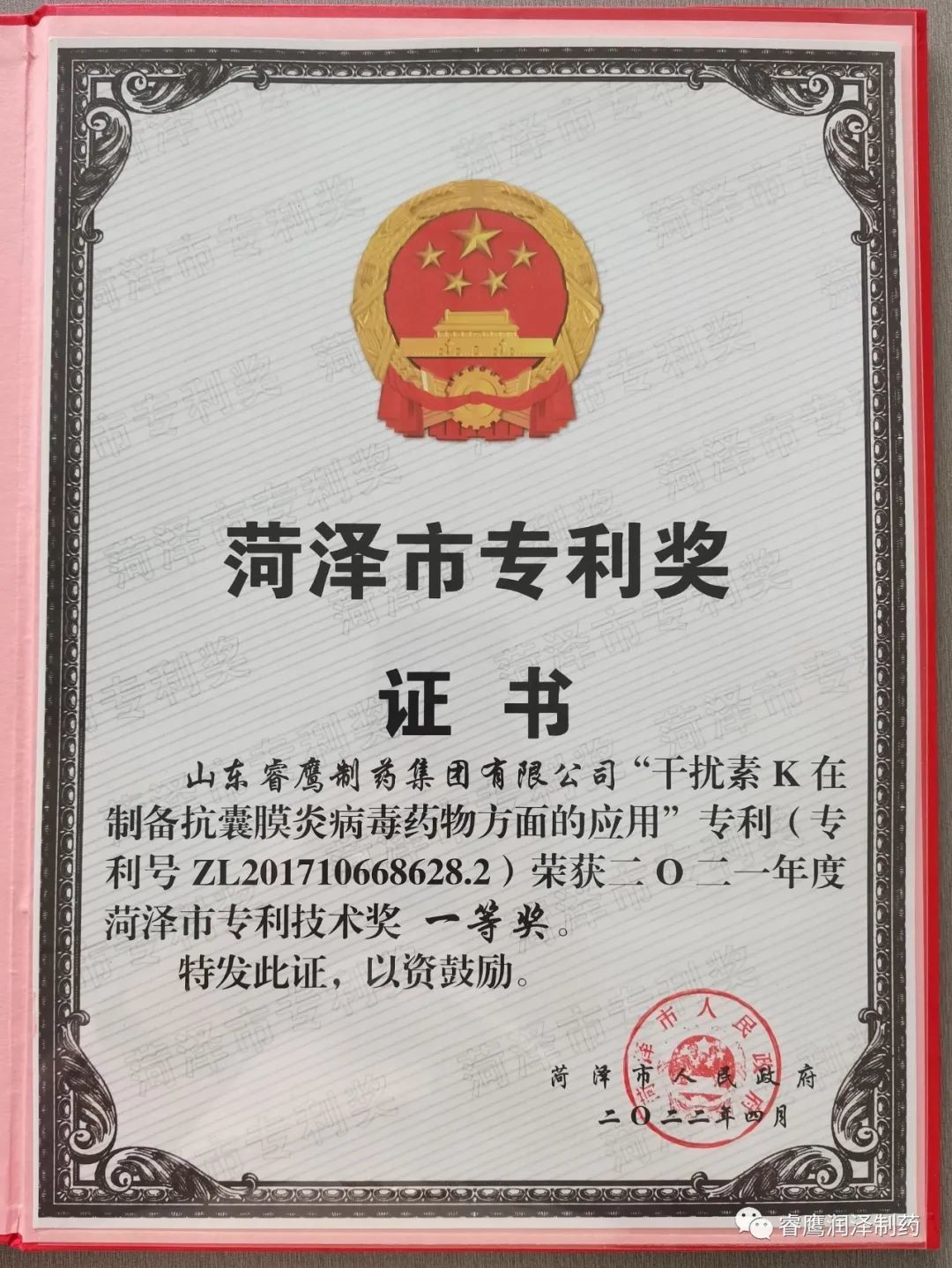 據(jù)悉,本屆專利獎(jiǎng)評(píng)選,聚焦全市“231”產(chǎn)業(yè)體系建設(shè),突出重點(diǎn)產(chǎn)業(yè)和關(guān)鍵領(lǐng)域核心技術(shù),獲獎(jiǎng)專利主要集中在我市核心產(chǎn)業(yè)、優(yōu)勢(shì)產(chǎn)業(yè)和新興產(chǎn)業(yè)領(lǐng)域,具有突出的創(chuàng)新質(zhì)量、運(yùn)用效益和示范效應(yīng)。此次共評(píng)選出專利技術(shù)獎(jiǎng)30項(xiàng),其中我集團(tuán)申報(bào)的“干擾素 K 在制備抗囊膜炎病毒藥物方面的應(yīng)用”專利榮獲菏澤市專利技術(shù)獎(jiǎng)一等獎(jiǎng)。