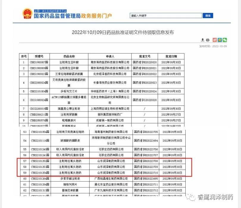 據(jù)2022年10月9日國家藥品監(jiān)督管理局政務(wù)服務(wù)門戶網(wǎng)站公示,睿鷹集團(tuán)子公司山東潤澤制藥有限公司申報(bào)的注射用拉氧頭孢鈉通過一致性評(píng)價(jià)。
