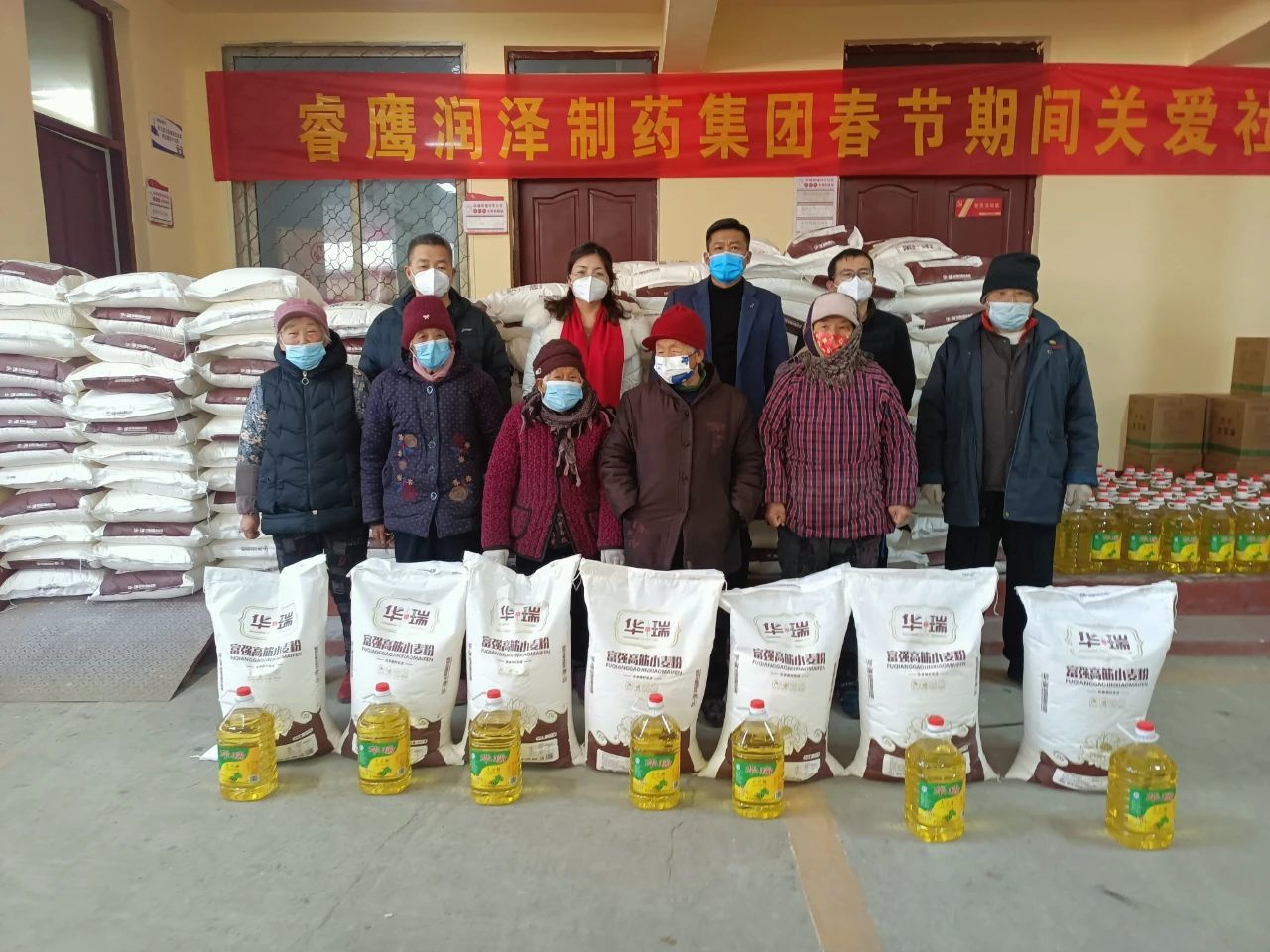 睿鷹工會負責人向各位老人傳達了彭總對各位老人的親切關心和關懷,“彭總一直心系著咱河東、河西社區的各位老人家!快過年了,彭總特地派我們過來看望各位老人家,祝福老人家春節愉快,萬事如意!身體健健康康,生活幸幸福福”!隨后,向社區300余名老人家發放了面粉和食用油。       通過與老人們面對面、心貼心的慰問,老人們充分感受到來自睿鷹集團的深切關懷,感受到來自睿鷹大家庭的溫暖。社區老人們由衷地感謝彭總和廣大睿鷹人的關心與關愛,并衷心祝愿睿鷹制藥集團越來越強盛、越走越輝煌!       睿鷹集團是具有強烈社會責任感的民營企業,自建廠至今30余年,持續向社會捐款捐物2000余萬元。睿鷹集團秉承”關愛周邊社區老人,關愛社區老人生活,每逢佳節為老人送去慰問,向老人們奉上濃濃關愛和真情祝福”的企業文化理念,在這一愛心活動的帶動和感召下,企業內部和周邊形成了一種“敬老、助老、愛老”的良好氛圍。據統計,截止目前我集團連續慰問社區老人30余年,累計金額近140余萬元,以實際行動踐行了企業的社會擔當。