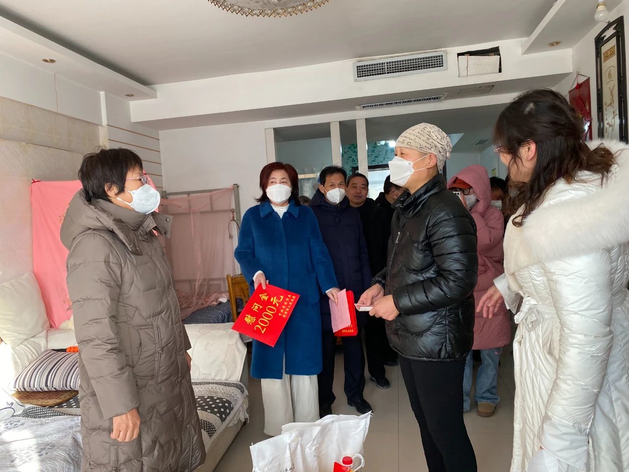 肖主席一行來到特困職工王瑞娟家中,為其帶來2000元慰問金及慰問物資。肖主席詳細(xì)詢問了王瑞娟的病情,并鼓勵她堅定戰(zhàn)勝病魔的信心,她說:“病痛只是暫時的,要好好治療,保持樂觀心態(tài),一切都會過去的。有困難及時向工會反映、向政府反映,我們會做你堅強的后盾”。同時,她勉勵王瑞娟的女兒好好學(xué)習(xí),長大之后成為有用之才,以實際行動報效社會,孝順母親。肖主席把黨和政府的關(guān)懷送給了王瑞娟及家人,同時送來了新春祝福!