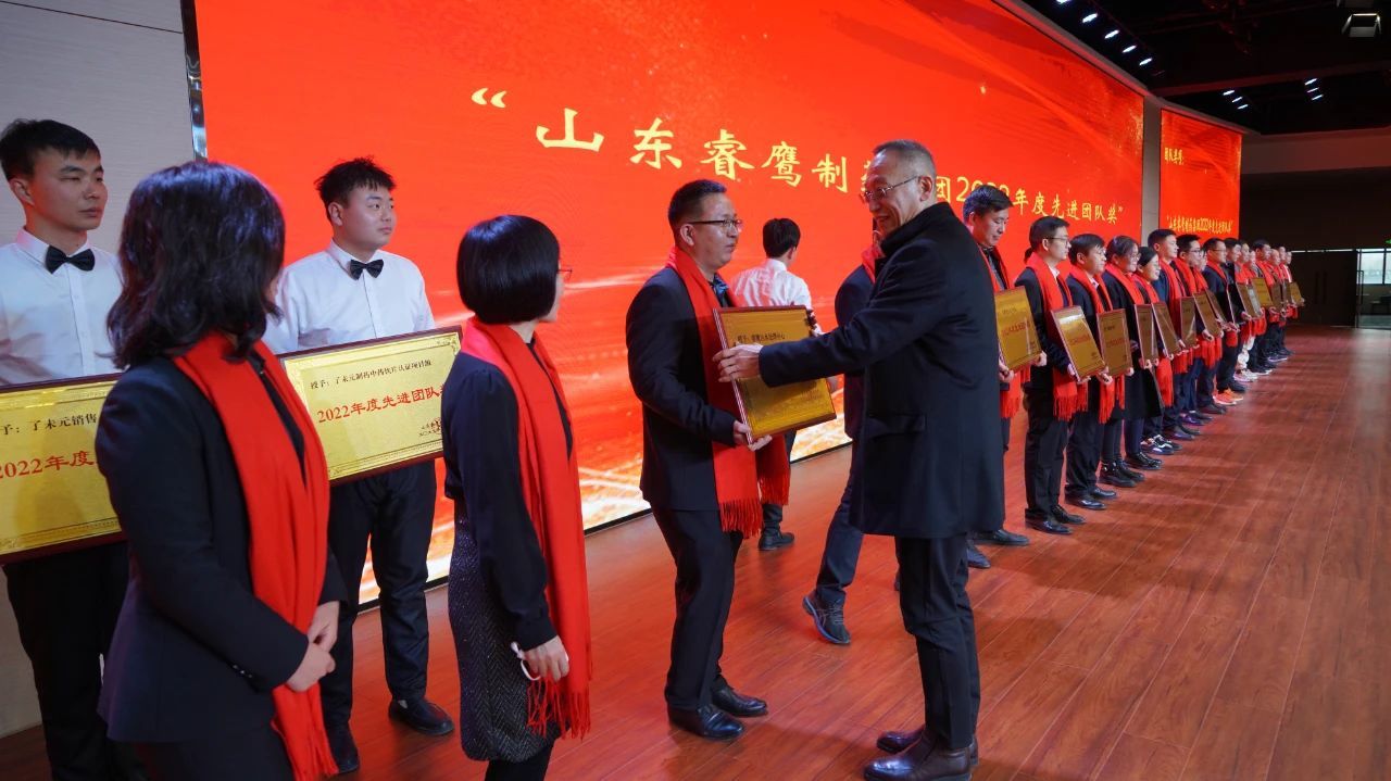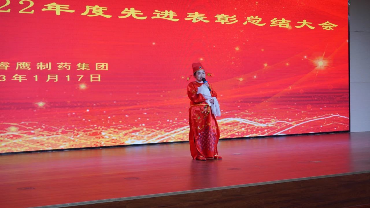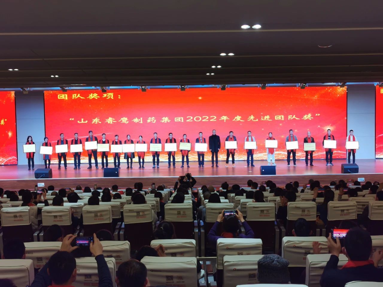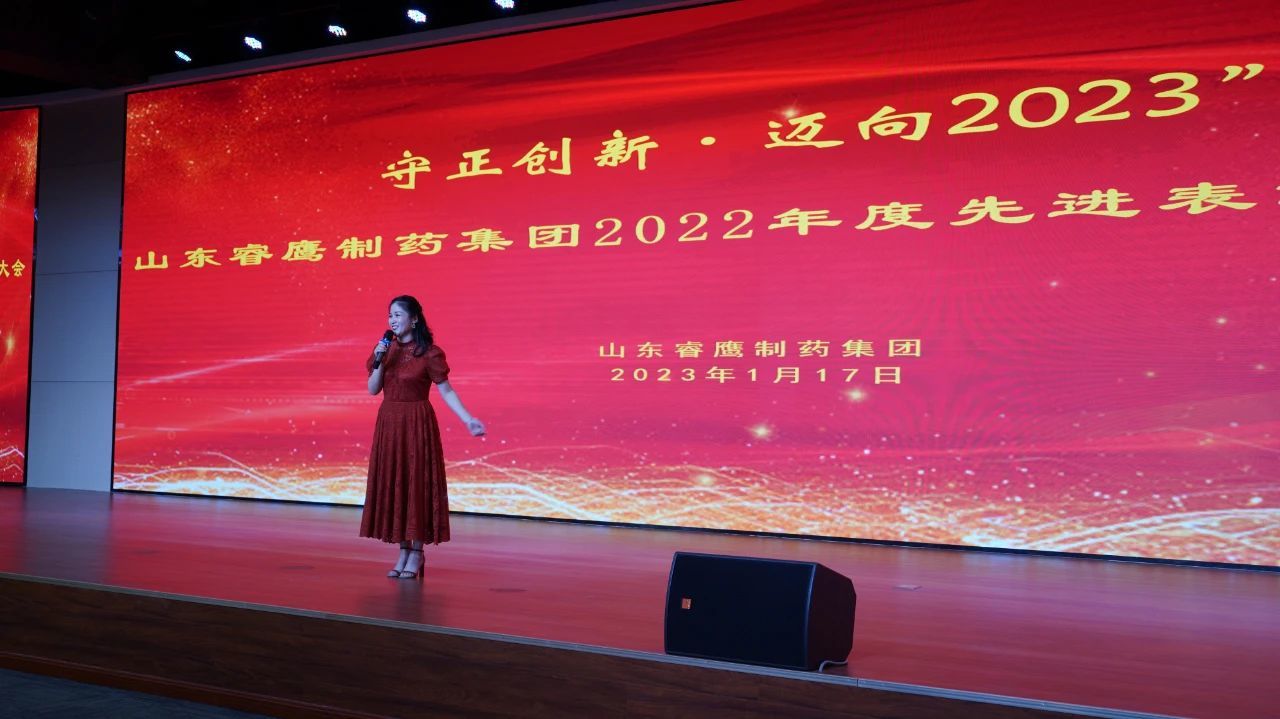 伴隨著《喜洋洋》的音樂伴奏,主持人盛裝登場,表彰大會正式拉開帷幕。會上,集團常務(wù)副總裁尚中棟宣讀了《山東睿鷹制藥集團關(guān)于表彰2022年度先進個人及團隊的決定》,此次共評出勞動模范40人,突出貢獻獎5人,技術(shù)創(chuàng)新能手2人,先進團隊20個。