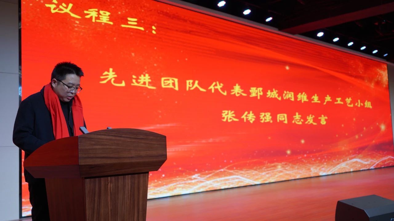 勞模代表王燕華、突出貢獻獎獲得者代表王林華、技術(shù)創(chuàng)新能手郭彩云,先進團隊代表鄄城潤維生產(chǎn)工藝小組張傳強分別進行發(fā)言。
