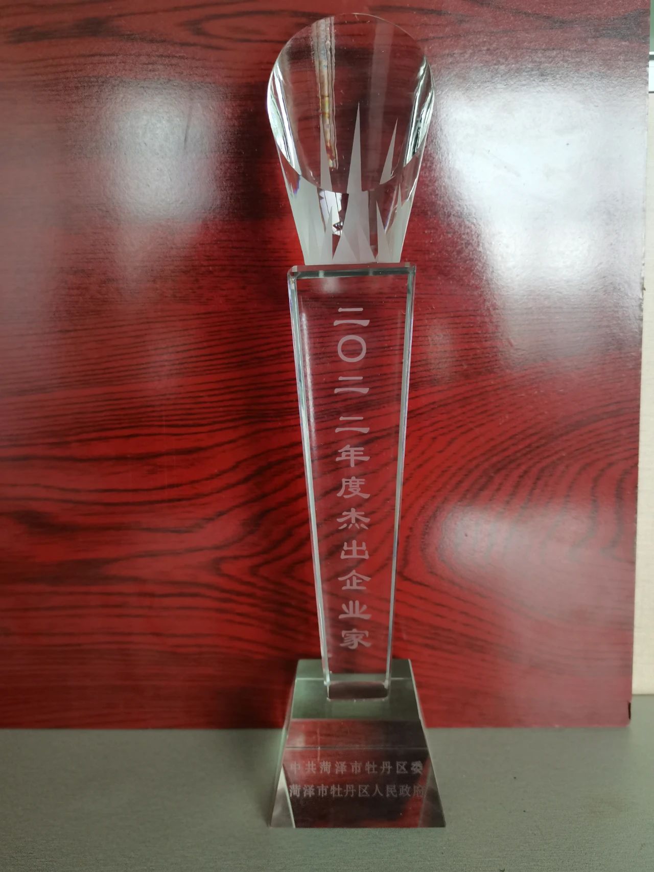 晶輝楊總領(lǐng)取“牡丹區(qū)二〇二二度科技創(chuàng)新十強企業(yè)”獎牌