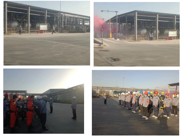 在公司搶險救援隊伍和消防救援大隊努力下,各相關部門密切配合下,經過了20多分鐘的緊張戰斗,模擬的一起丙酮泄漏著火事故被成功處置,應急救援工作圓滿完成,各應急救援小組集結隊伍,清點人數。