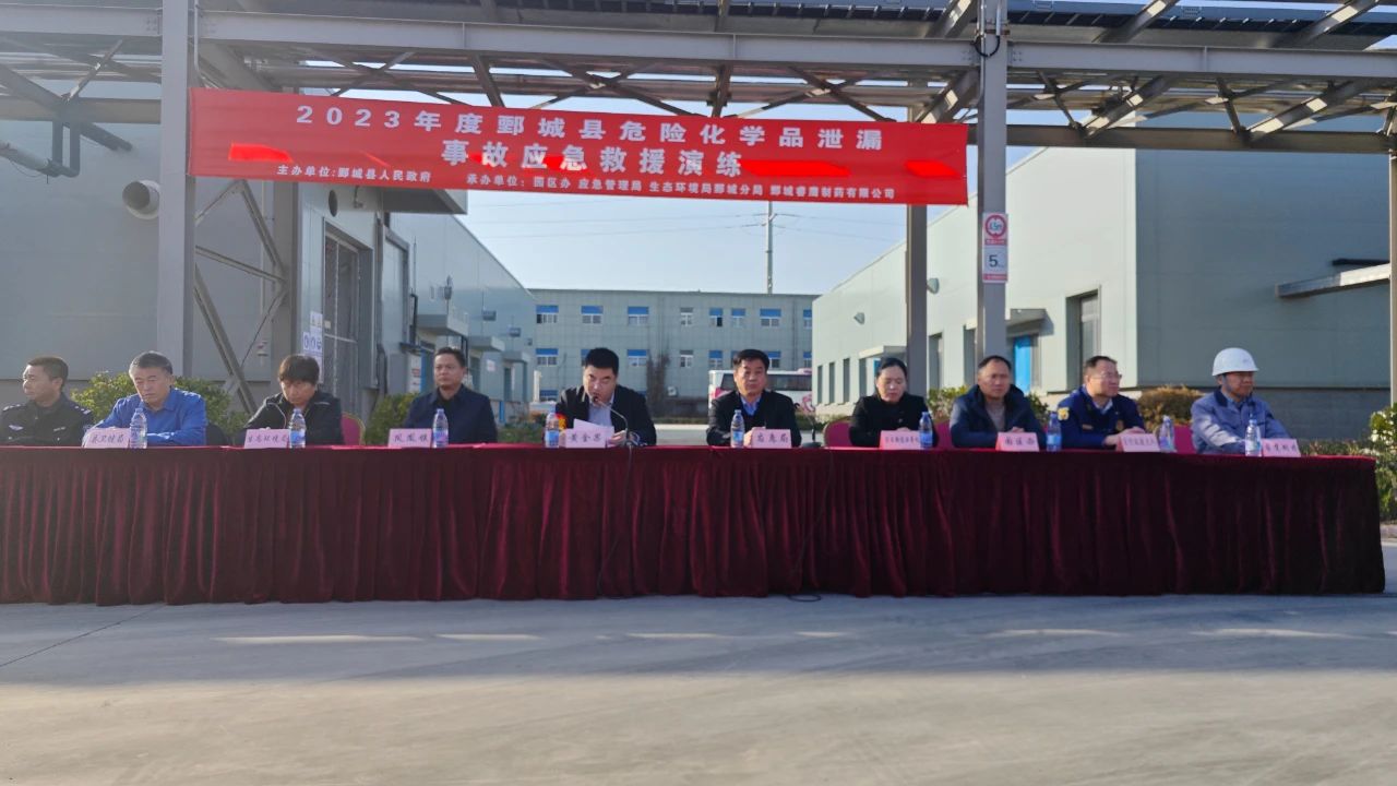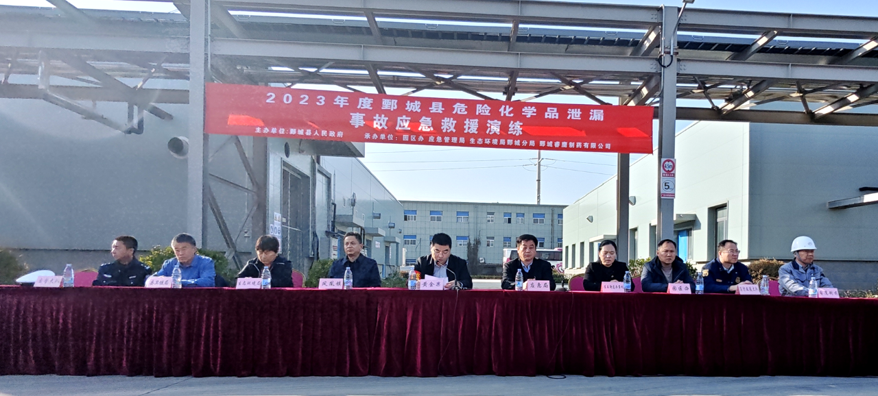 2023年12月8日下午14點,在鄄城睿鷹制藥有限公司廠區內舉辦了一場聲勢浩大的安全應急演練。共有來自鄄城縣化工產業園管理辦公室、縣應急管理局、縣交警大隊、縣消防救援大隊、縣衛健局、縣生態環境局、陳王街道辦事處、鳳凰鎮鎮政府、鄄城睿鷹制藥有限公司等9個相關單位參演。鄄城縣委常委、常務副縣長黃金果同志,縣應急管理局局長吳金華同志,以及其他各參演單位的主要負責人蒞臨現場觀摩。