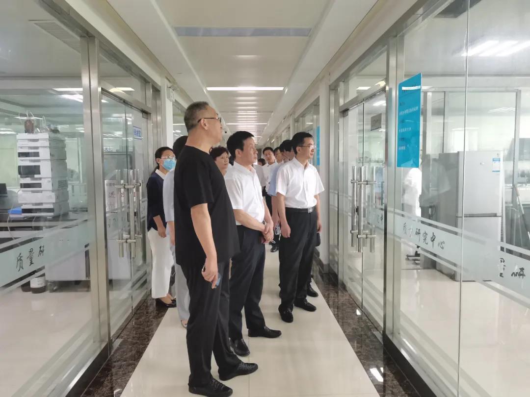 2021年7月22日上午10時,山東省醫保局黨組書記、局長張寧波同志,帶領省醫保局規劃財務和法務處處長王洪波,省醫保局待遇保障處處長黃曉軍,省醫保局基金監管處處長張慶國,省醫保局醫藥服務管理處二級調研員李夙夙及省醫保局醫藥價格和招標采購處副處長劉智同志一行六人,在副市長侯婕、市政府副秘書長劉蕓等領導同志的陪同下,到睿鷹制藥集團調研生物醫藥產業發展情況,睿鷹集團總裁彭繼先陪同調研。